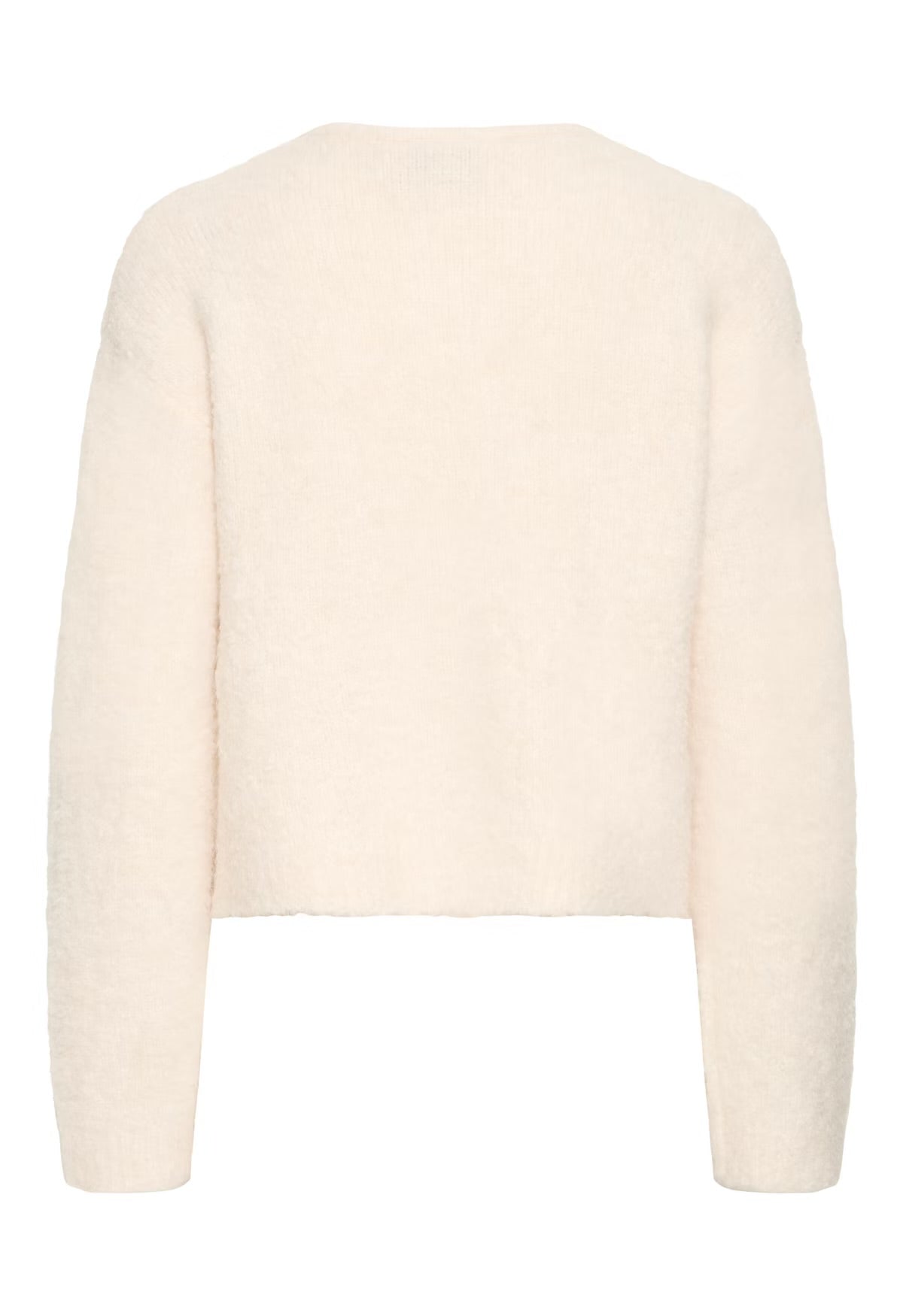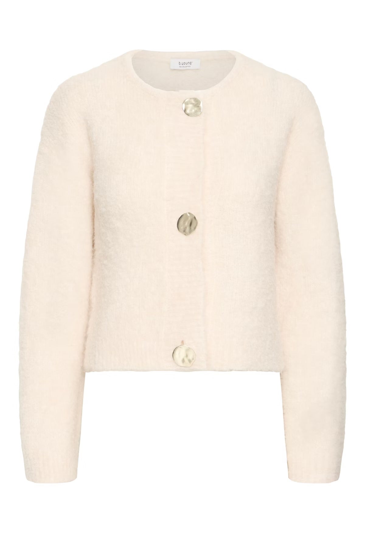 This women's cardigan features a relaxed fit, textured knit for comfort, and a round neckline. Statement buttons create a modern look, making this cardigan ideal for versatile styling and everyday wear.