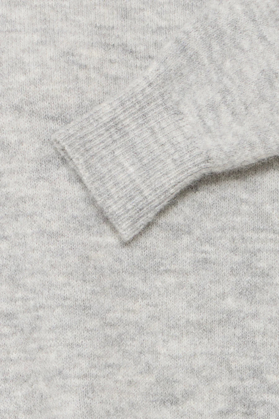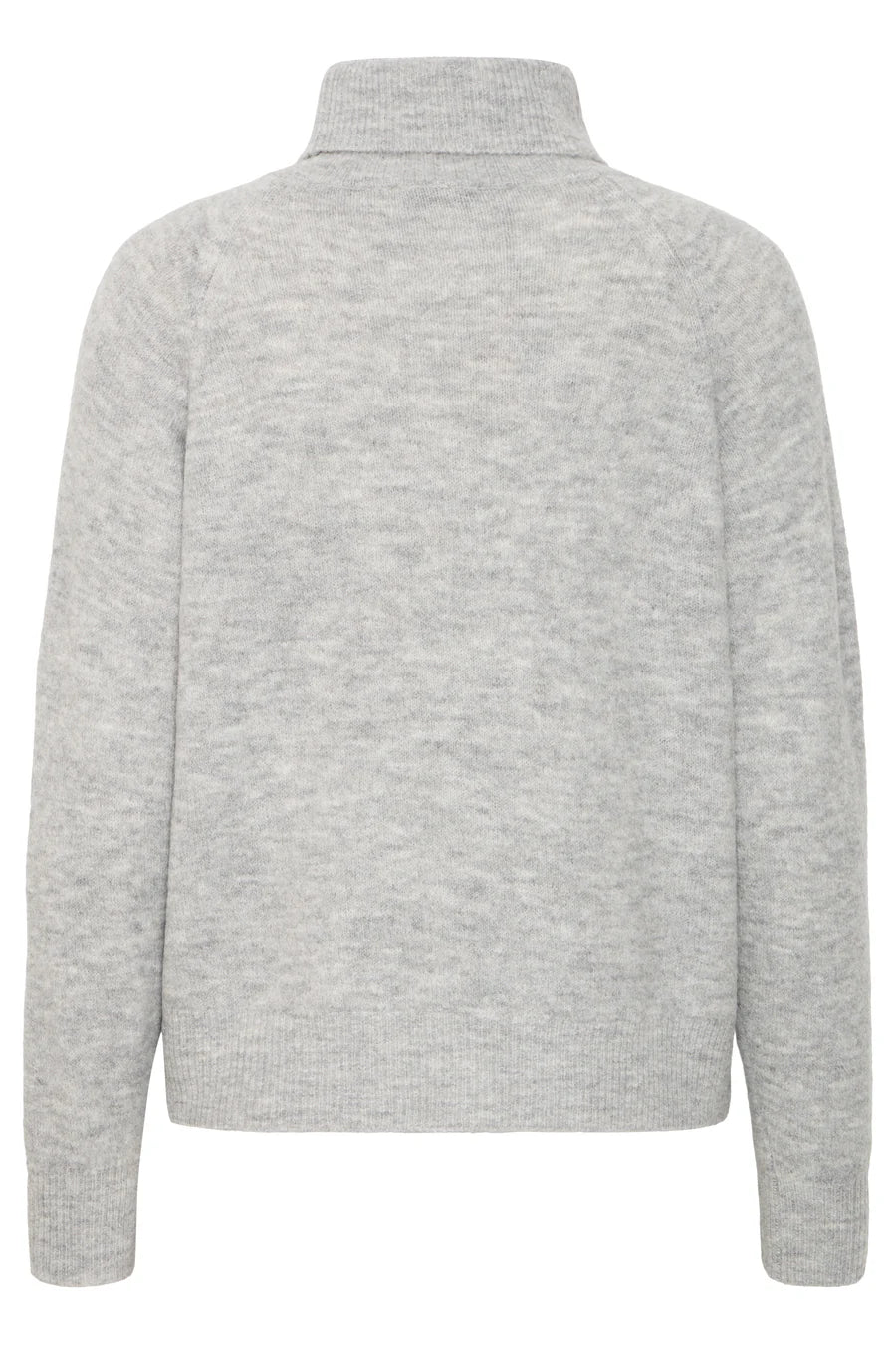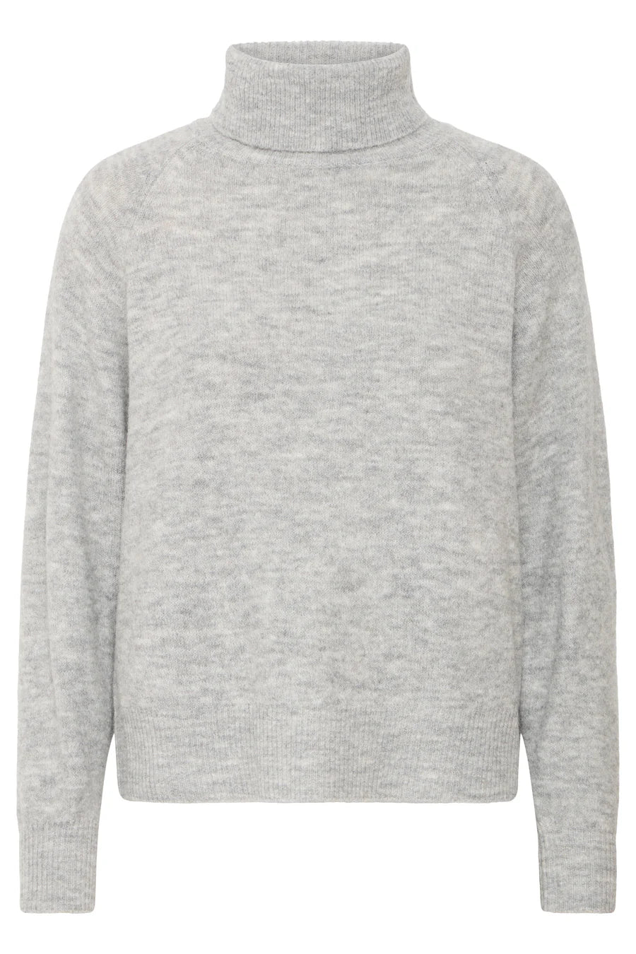 Grey knitted rollneck jumper with long sleeves and ribbed edging.