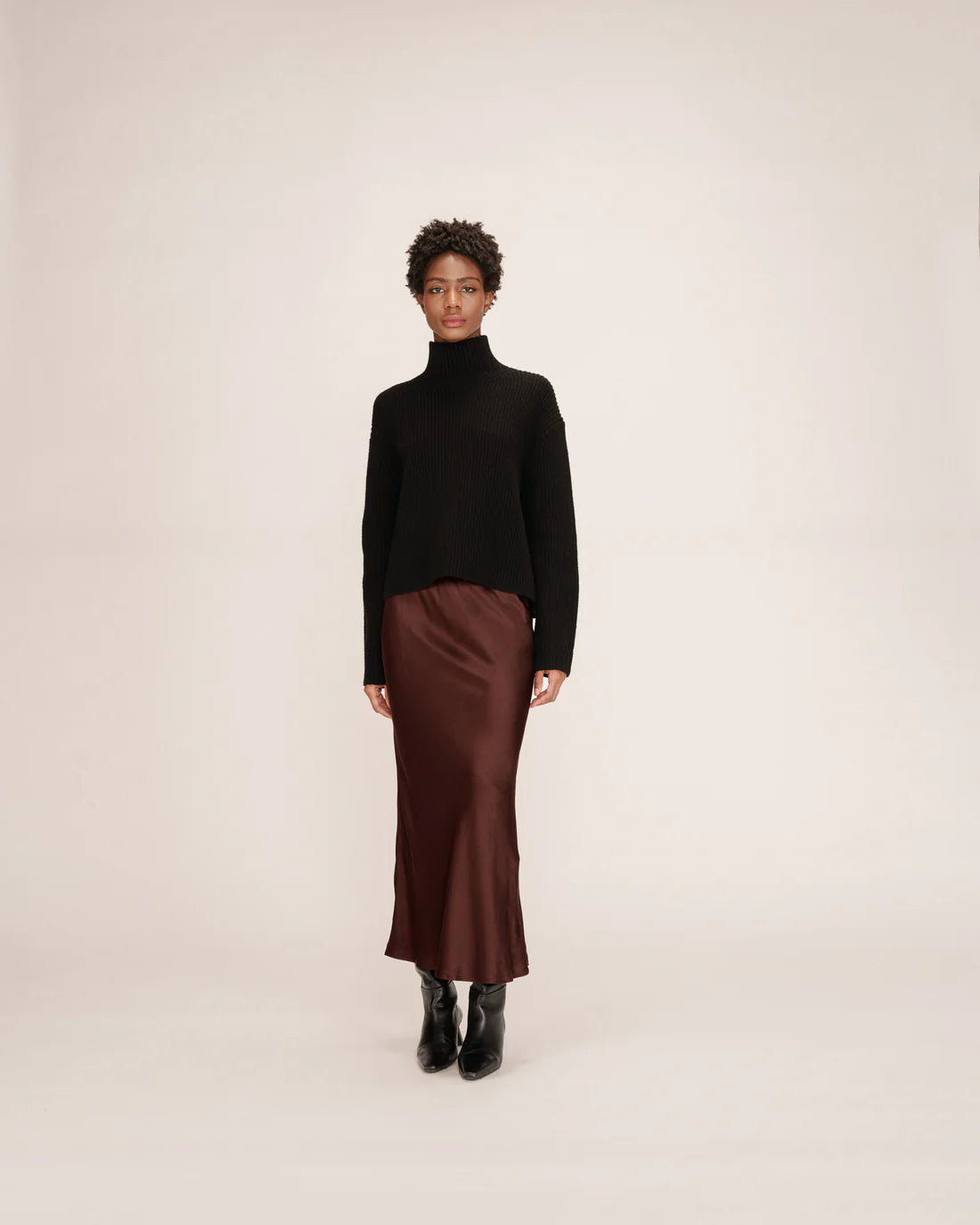 - Long satin skirt