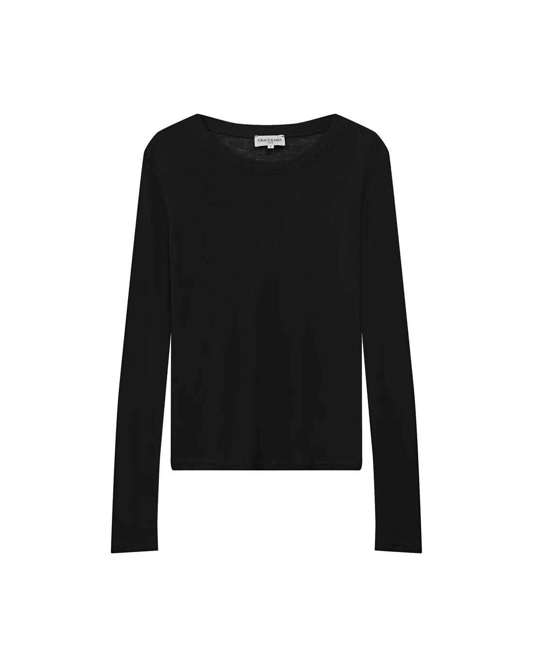 • Load image into Gallery viewer, Grace And Mila Toni Sheer Jersey Top Black