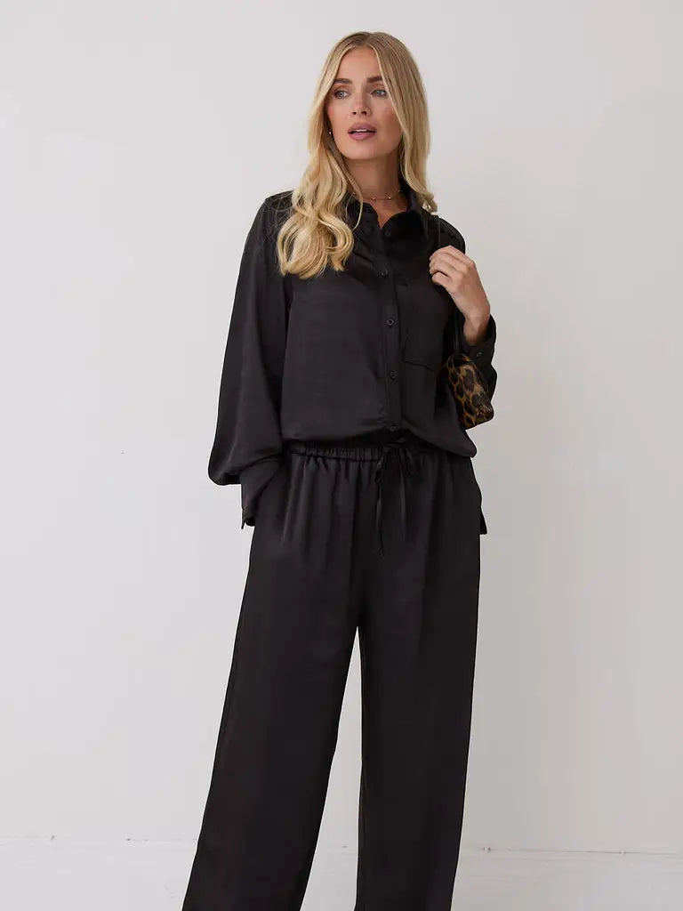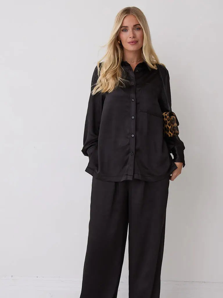 Fika Ebba Black Satin Elasticated Waist Trousers